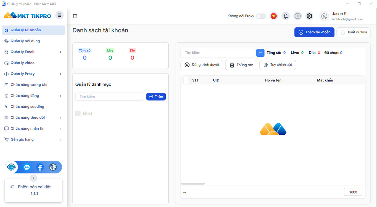 Danh sách Tool ACTIVE MKT